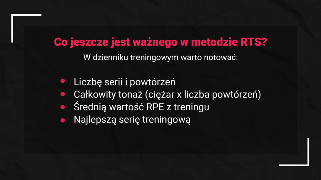 Co jest jeszcze ważnego w metodzie treningowej według RTS?
